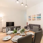 Denne ferielejlighed er indrettet med et udstyret køkken køkken og tilbyder et opholdsområde og tv.